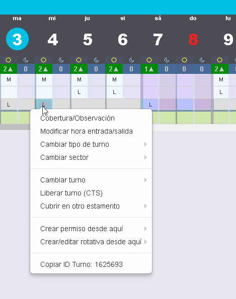 1️⃣ Haz clic en el turno que desea cambiar el solicitante.