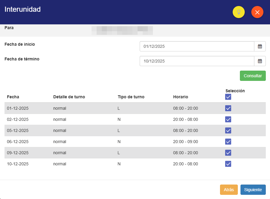 2️⃣ El sistema te preguntará si deseas enviar solo ese turno o un periodo definido (Múltiple).