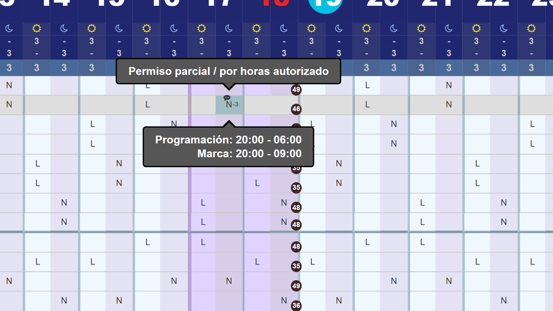 Para modificar las horas de un turno programado se debe hacer click en el turno y luego "Modificar su entrada/salida".