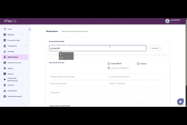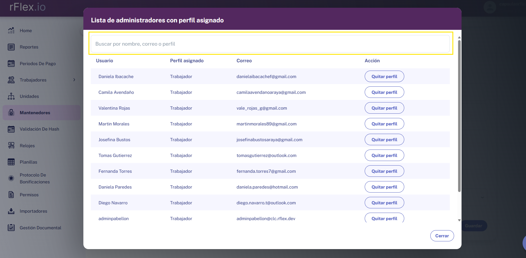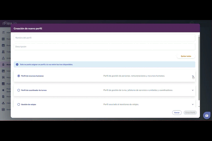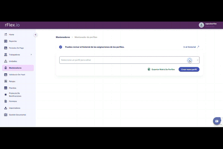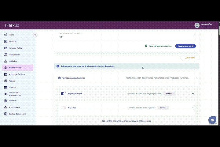El Mantenedor de Perfiles permite gestionar qué acciones puede realizar cada usuario dentro de rFlex, de forma clara, segura y personalizada.