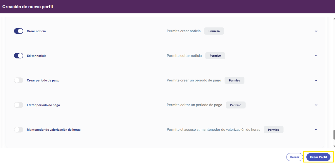 Una vez que hayas seleccionado todos los permisos necesarios, haz clic en “Crear perfil”.
