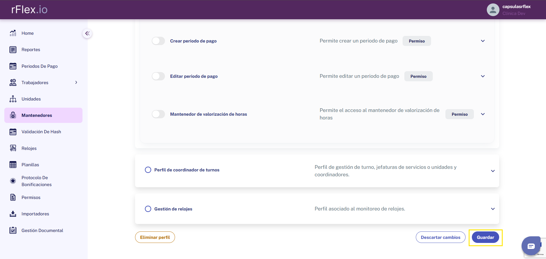 Aquí comienza lo bueno: deberás definir qué puede hacer este perfil dentro de rFlex.