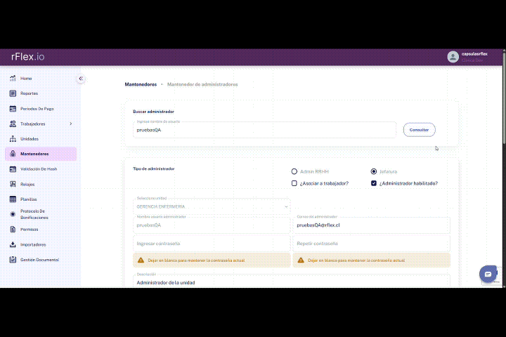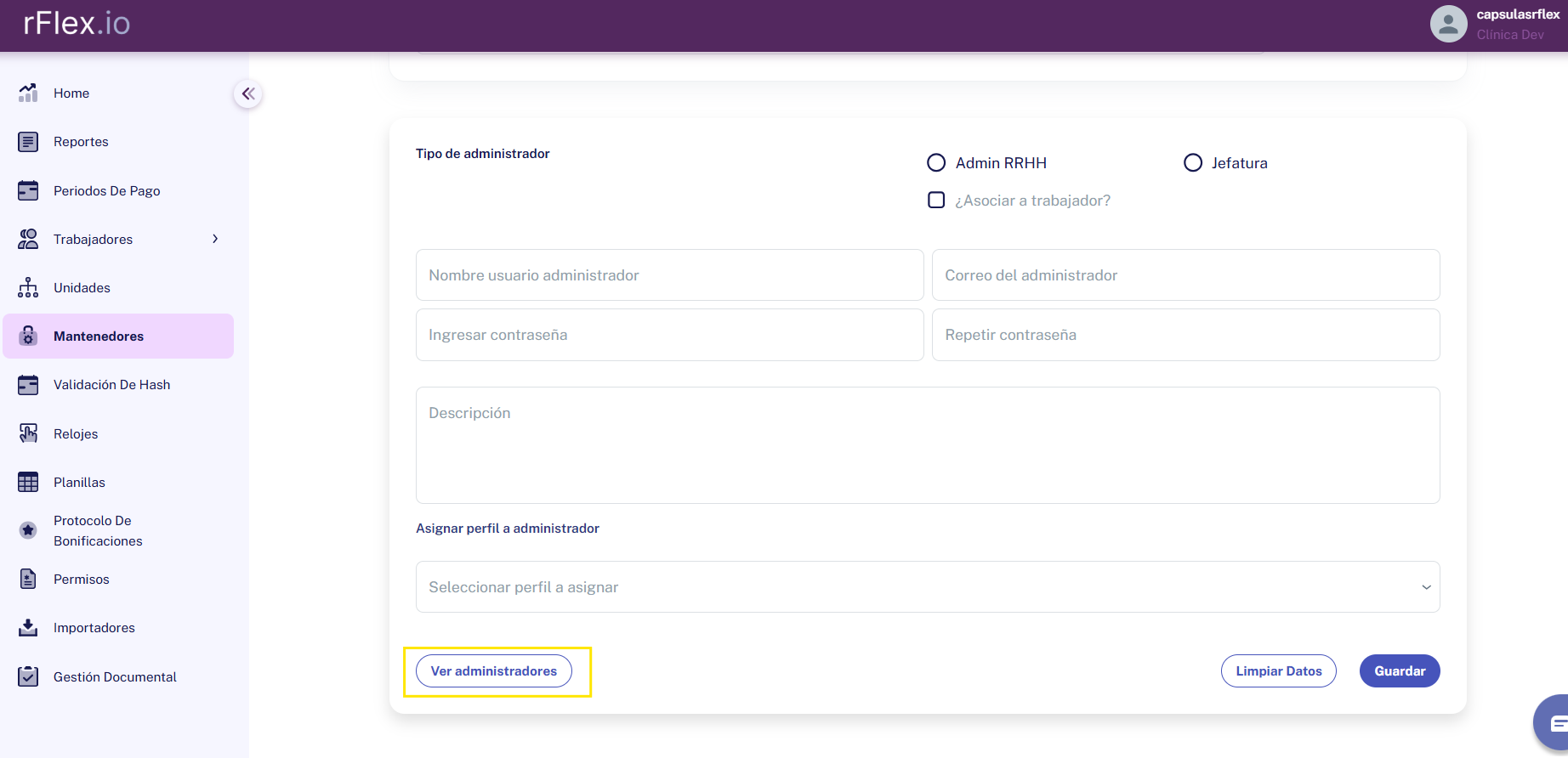 ✅ Opción 1: Desde el Mantenedor de Administradores