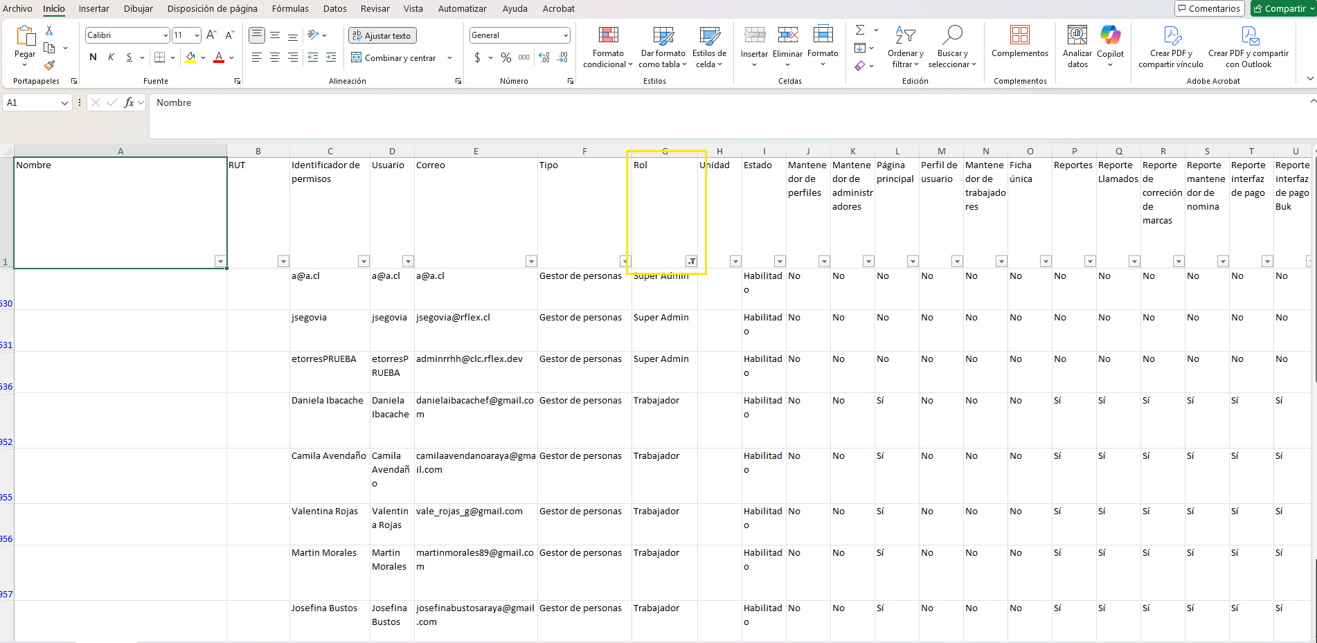 - Desde el Mantenedor de Perfiles (vía exportación Excel - solo revisar)